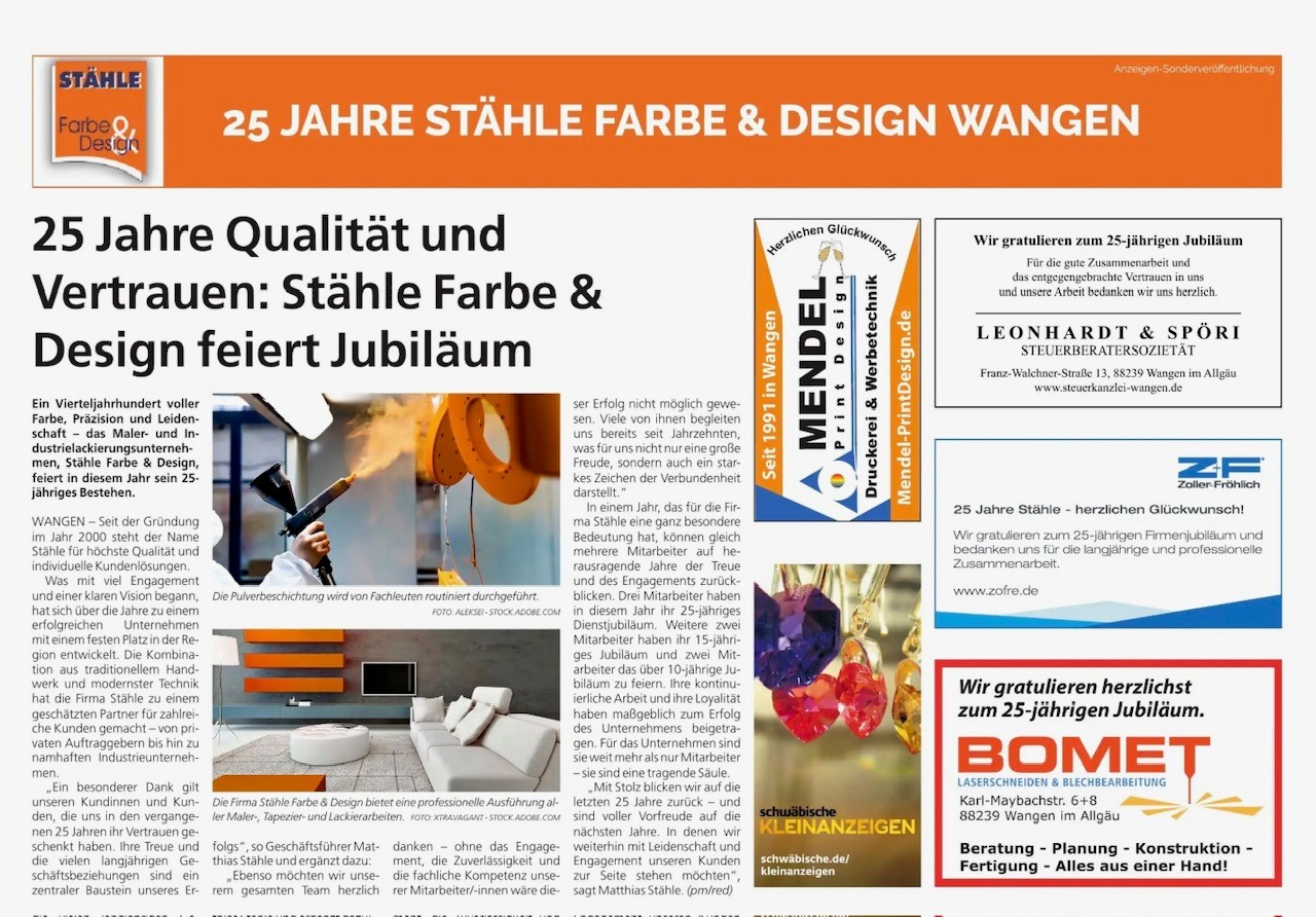 Wir feiern Jubiläum! Stähle Farbe & Design feiert 25-Jähriges-Jubiläum!